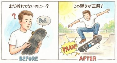 元プロスノーボーダーの視点から、スケボーデッキの交換時期を徹底解説。折れていなくても「弾き」を失った板は寿命です。育休を経て復職したパパスケーターが、限られた練習時間の質を最大化するための「道具への投資」の重要性を語ります。Plan Bへのデッキ新調エピソードも紹介。