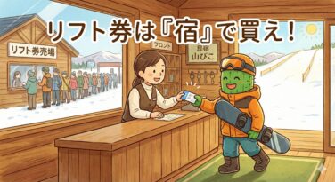 スキー場の窓口に並ぶのは、お金と時間の損失です!元プロレベルのスノーボーダー「すなお」が、リフト券を1,000円安く、かつ混雑を回避して手に入れる「宿での購入術」を伝授。宿側にもメリットがあるWin-Winな節約法や、2日券の選び方まで徹底解説します。