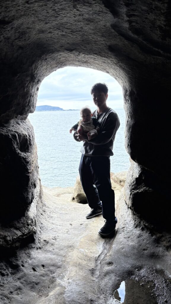私が今回、沖ノ島公園を訪れて最も興奮したのは、実は島の裏手にある小さな洞窟です。