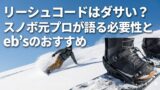 スノーボードには、板と足を繋ぐ「リーシュコード」が必須です。