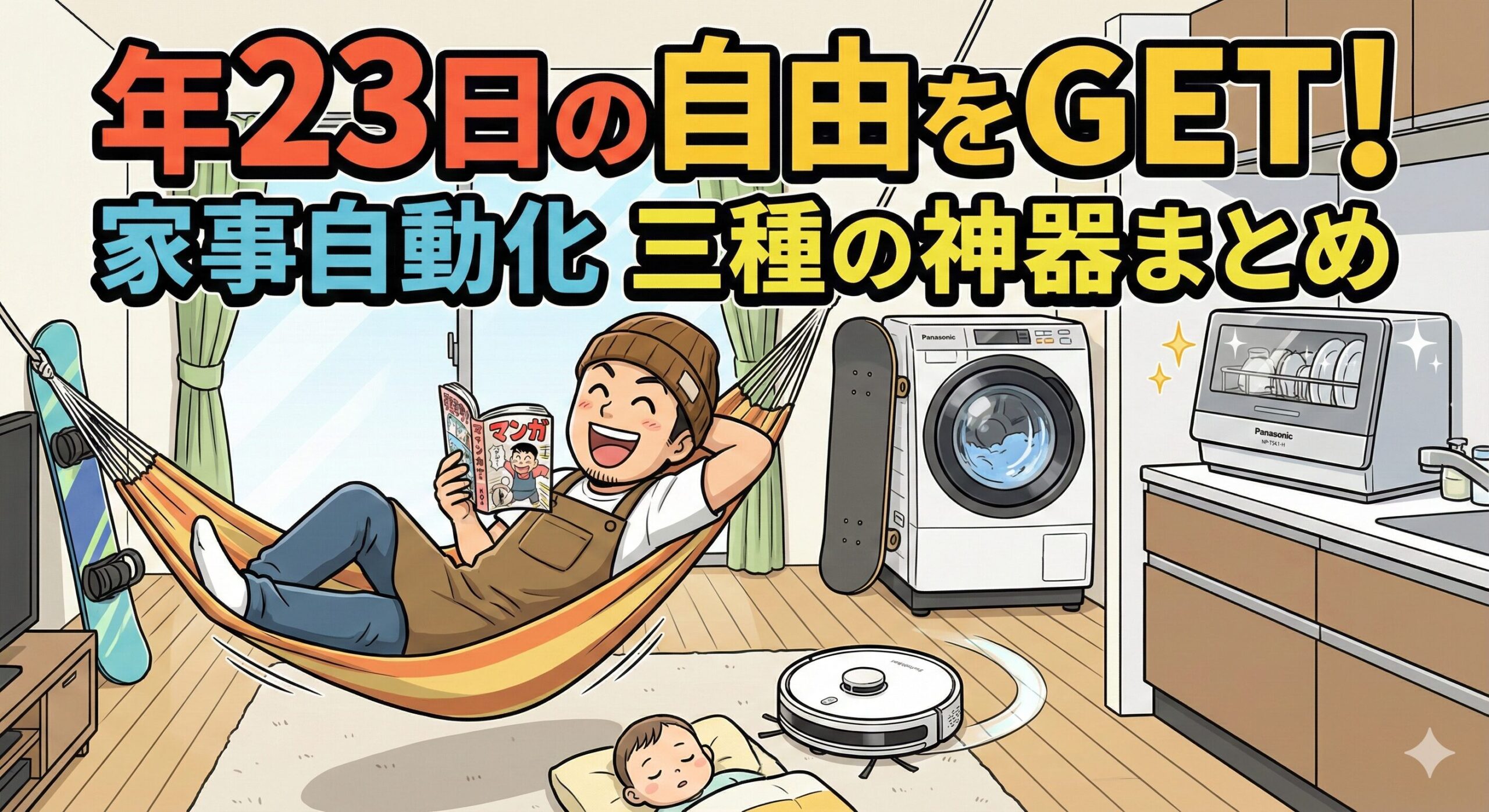 結果、僕は年間で「23日間」の自由時間を買い戻しました。 今回は、育休を「復職後の練習期間」として使い倒し、家族の笑顔を守るために導入した「三種の神器」の真価を語ります。