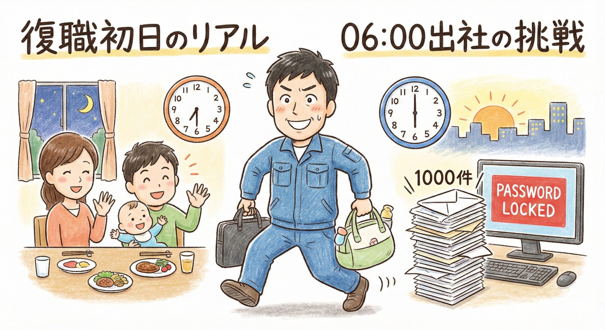 【男性育休180日】復職初日のリアル。パスワードロック、部署消滅、そして「06:00出社」という攻めの選択