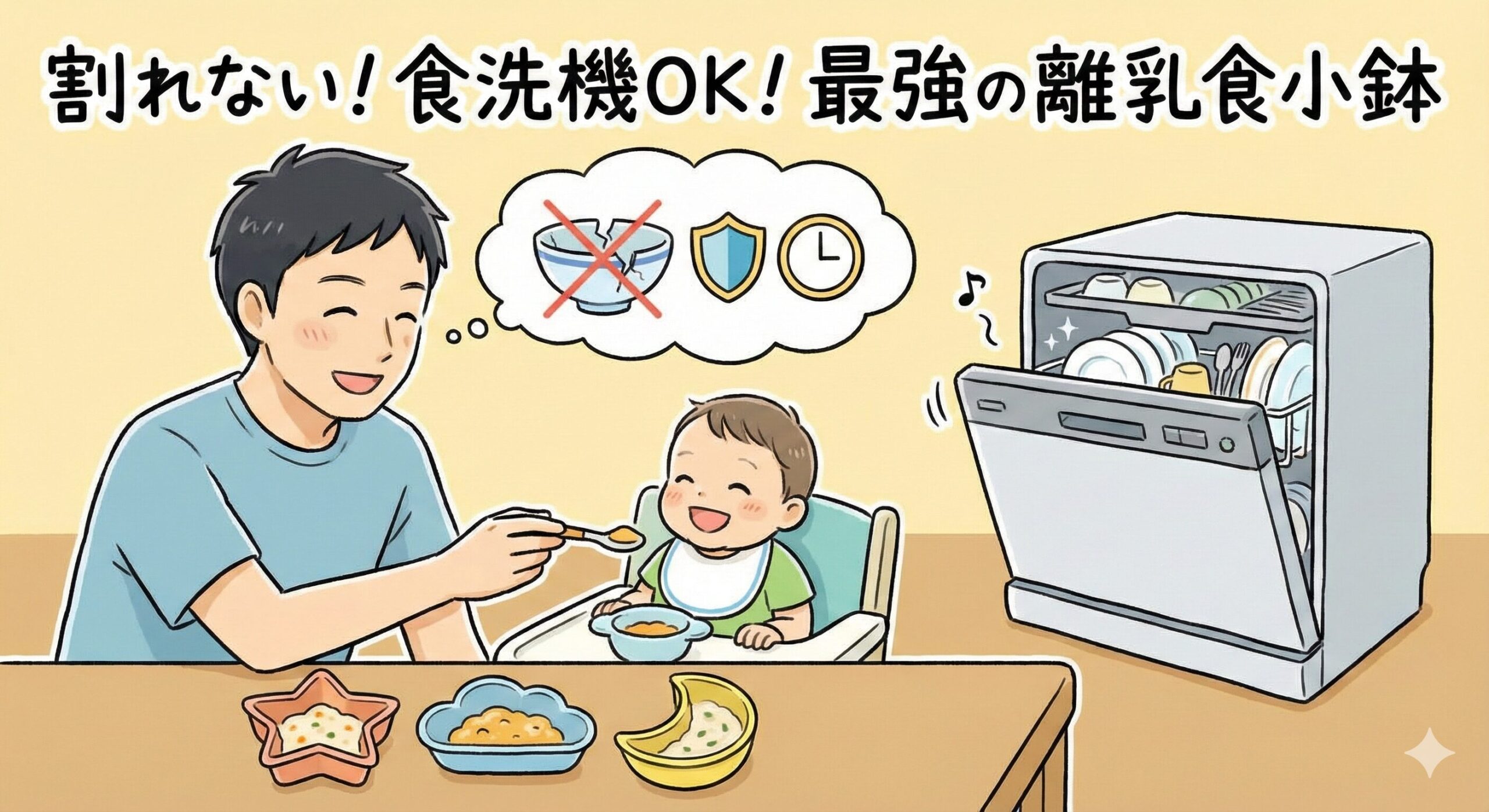 「どうせすぐ食べられなくなるし、100均で十分だよね」 「陶器だけど、食洗機対応だから手間もかからないし」