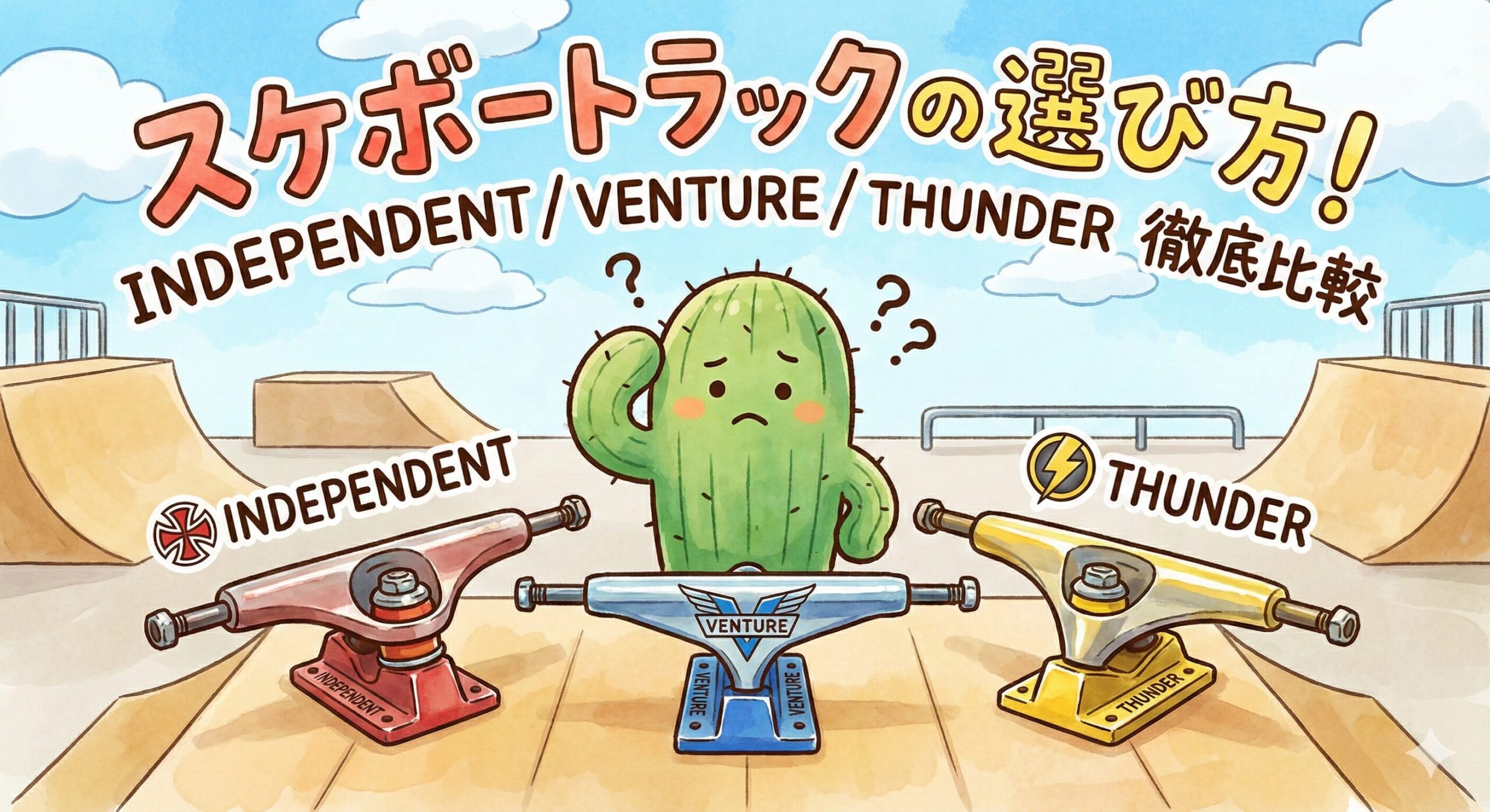 今回は、まず覚えておいてほしい主要3社 Independent / Venture / Thunder の違いを中心に、初心者の方が絶対に失敗しないトラックの選び方を徹底解説します。